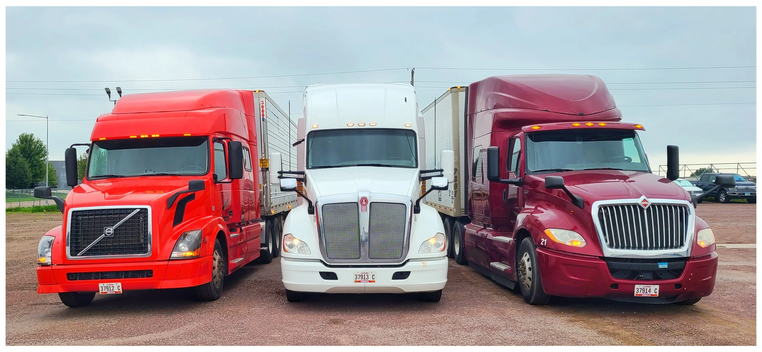 Full size Class 8 trucks with sleepers, and 53’ box trailers.